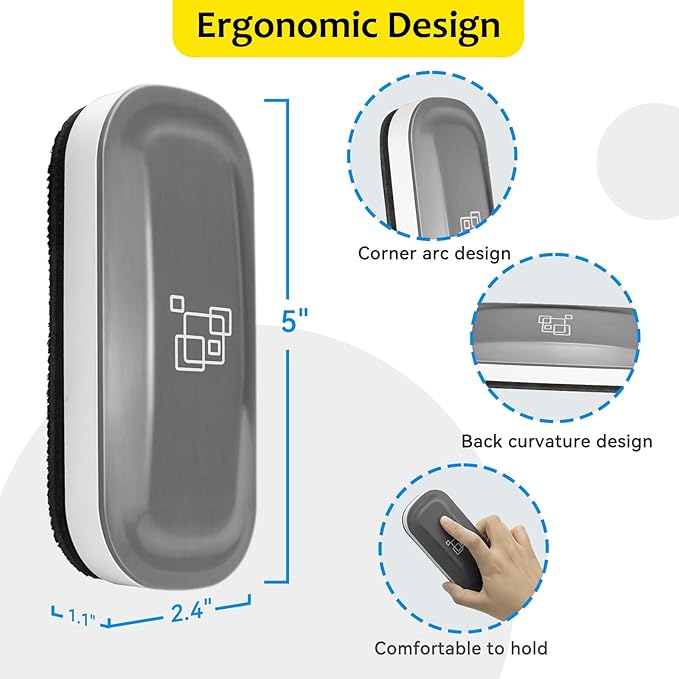 - Ergonomic Comfort: The curved, ergonomic design fits comfortably in your hand, reducing strain for a smooth, comfortable whiteboard cleaning experience.