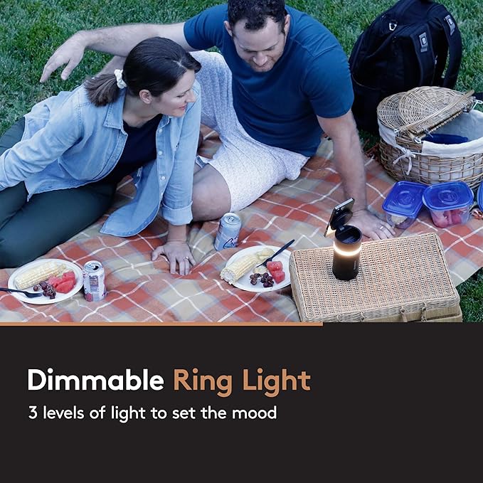 - Versatile and hands-free: Tiltable lid holds your phone so you can conference or watch videos while wirelessly charging it; 360-degree ring light offers multiple brightness settings so you don’t have to work in low light