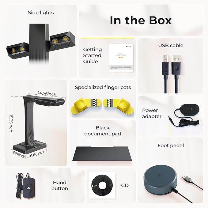 - 16MP HD Camera, Easy and Fast: Embedded 16MP HD Camera and with the 1.5 S/P scanning speed, ET16 Plus can easily finish scanning a 300 page book within 10 min, which is 10 times faster than traditional scanner