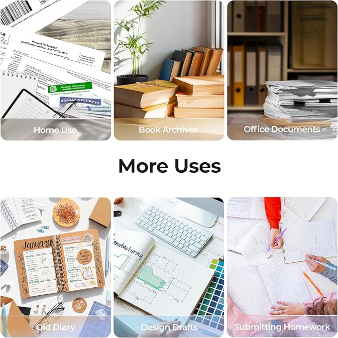 - Capable of scanning multiple items: Books & Binder Documents, Business Cards and Vouchers and even Physical Objects. *Note: Very glare papers are NOT recommended