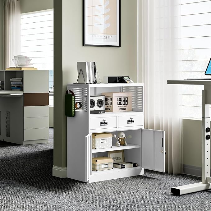 - 『PRACTICAL DESIGN』:Our tall metal cabinet equipped with 2 drawers and 1 adjustable shelves to provide adaptability and convenience. High-grade lock picking to secure valuables, two keys are included. Regardless of what your storage needs are, you have the ability to create a unique storage space to suit them.