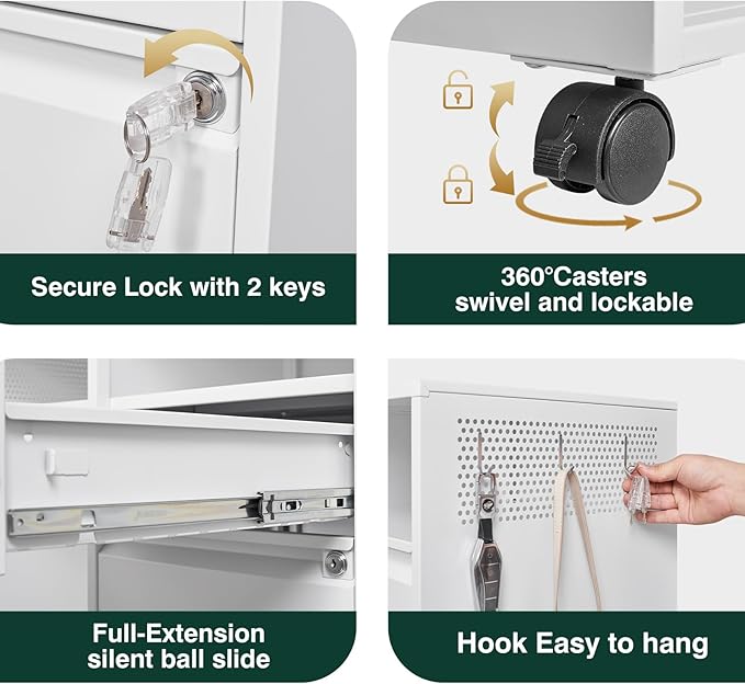- 【Stylish Design & Easy Assemble】The storage cabinet allows hanging all kinds of accessories, and other small items. Locking file cabinet can be assembled easily,which features a convenient and uncomplicated installation.