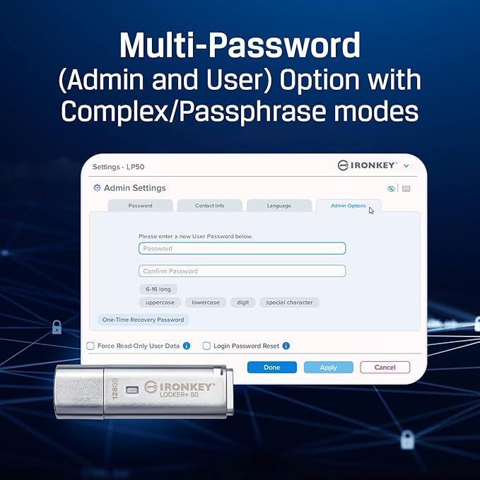 Kingston Ironkey Locker+ 50 256GB Encrypted USB Flash Drive | USB 3.2 Gen 1 | XTS-AES Protection & TAA Compliant | Multi-Password Security Options | IKLP50/256GB