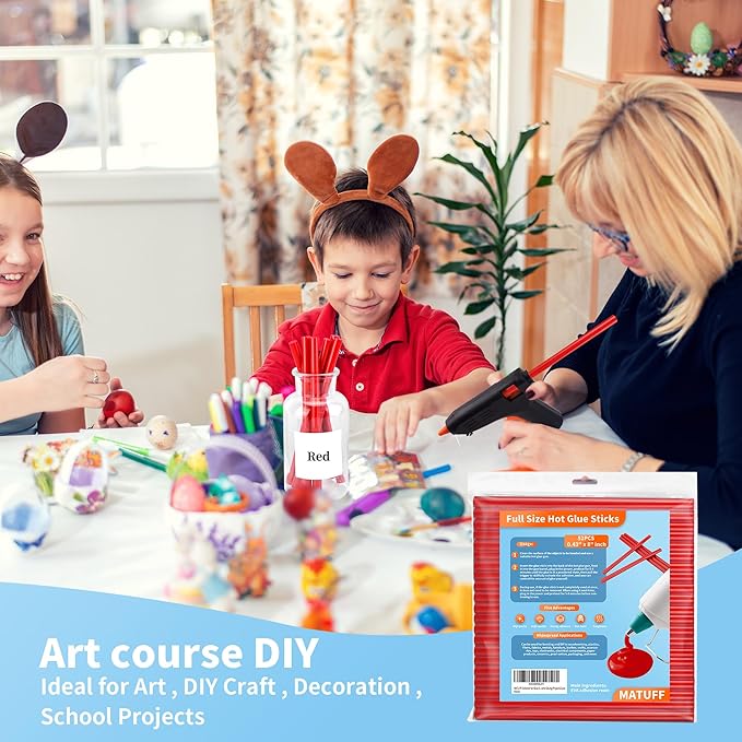 - 【Wide Application】hot glue gun sticks are perfect for crafting, card making, scrapbooking, carton sealing, phone case beauty, electronic appliances, gluing projects, waxing seal stamp, general repairs,creating arts, holiday crafts, decorations, home, office, school DIY and toys.