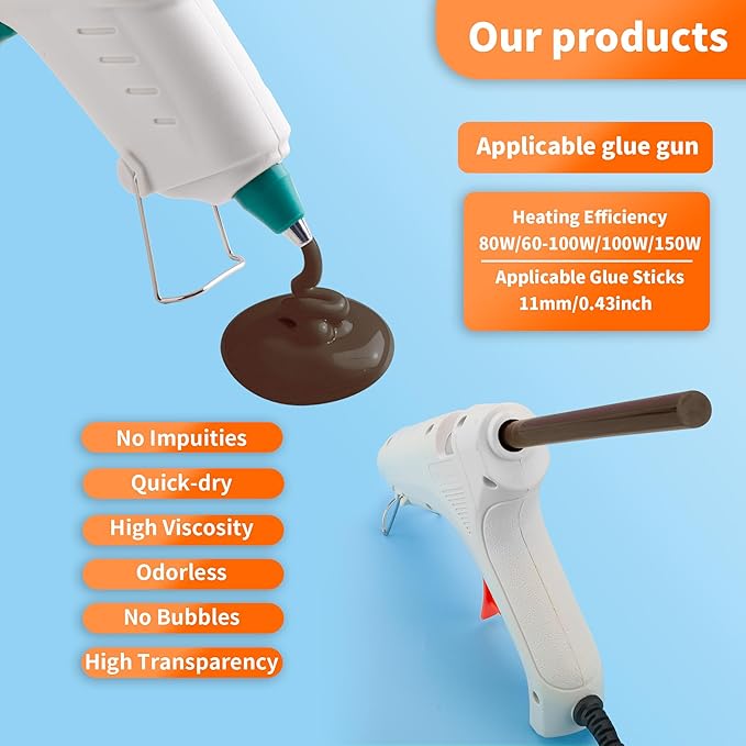 - 【Wide Application】hot glue gun sticks are perfect for crafting, card making, scrapbooking, carton sealing, phone case beauty, electronic appliances, gluing projects, waxing seal stamp, general repairs,creating arts, holiday crafts, decorations, home, office, school DIY and toys.