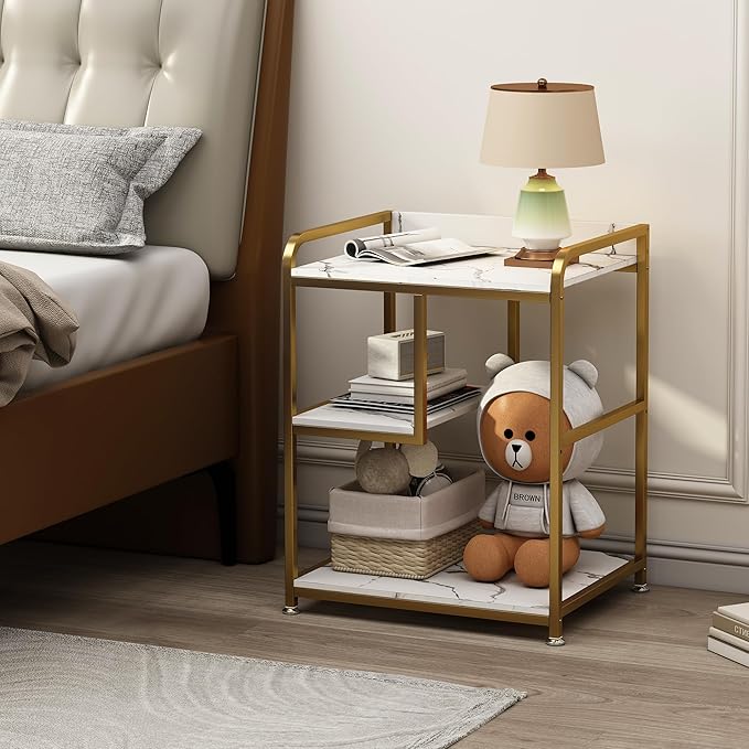 - 【Smooth Modern Appearance】The bright faux white marble shelf combined with stylish streamlined golden framework outlines the endless beauty of modernism, making it an appealing home office furniture, which stands apart from many other alternatives in the market.