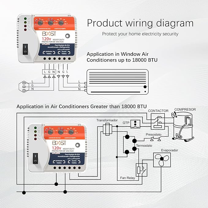 - Customizable Delay Time for Reliable Protection: Features an adjustable delay time (180-300 seconds) to stabilize voltage before power is restored. This function is particularly important for large appliances like refrigerators and air conditioners, preventing frequent restarts and extending appliance lifespan.