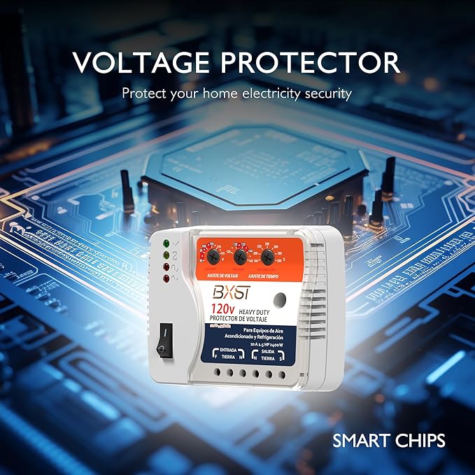BXST Wiring Voltage and Wiring Surge Protector for Refrigerator TV 2400W Appliance AIR Conditioning Inverter Mini Split Adjustable Over/Under and Delay Time Voltage 20A 220V 140J
