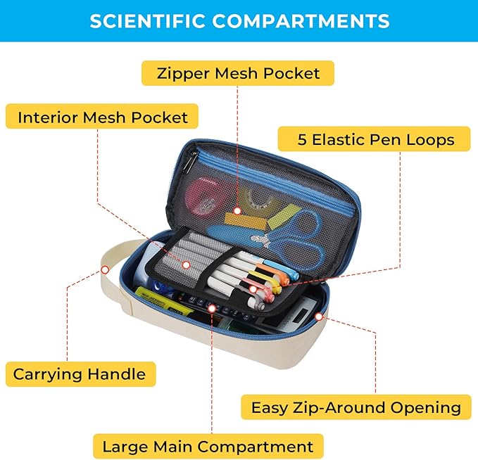 - LARGE CAPACITY: 9.44" x 4.72" x 2.36". Pencil case has a scientific storage design with a deep big capacity that can easily hold your supplies such as pens, pencils, markers, highlighters, erasers, a calculator, notes, and other stationery items. Spacious, Functional, and Aesthetic