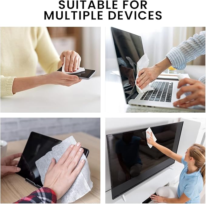 - Multi-Device Compatibility Screen Cleaner Wipes- Superior Computer Wipes and TV Cleaner: From your flat screen TV to your precious smartphone, EVEO Electronic Wipes are the universal solution. As a specialized TV cleaner for smart TVs and a gentle computer screen cleaner, these wipes ensure that every pixel on your electronic devices is as clear as the day you bought them. Use EVEO to clean multiple screensβwithout any worry.