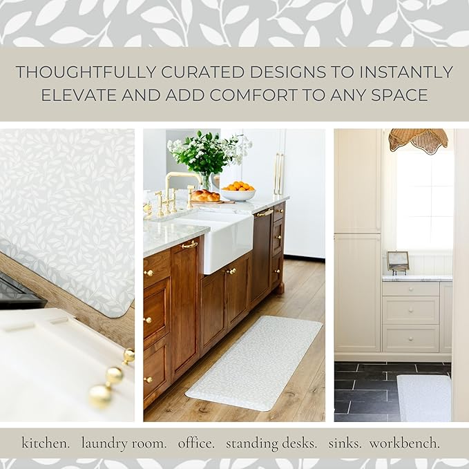 - BEAUTIFULLY DESIGNED: Elevate the aesthetics of your home with our beautifully curated anti-fatigue kitchen mats. With practical and timeless designs, these premium standing mats seamlessly blend beauty with functionality elevating your home, standing desk, work station, and any space where you stand.