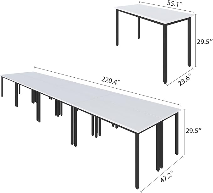 - PERFECT SIZE: 8PCS conference tables accommodate 20 people. Measuring 220.4"D x 47.2"W x 29.5"H. Dimension of each single computer desk is 55.1" L x 23.6" W x 29.5" H for random combination. Stylish and Sleek design ideal for any office, conference room, meeting room and study room.