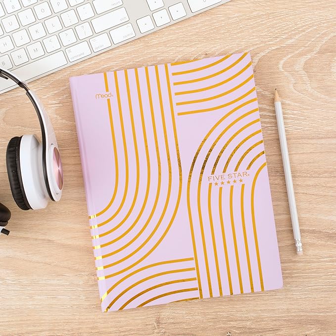 Five Star Composition Book, College Ruled Paper, 7-1/2" x 9-3/4", 80 Sheets, Hardcover, Lilac and Metallic Gold Arches (850111F-AMZ)