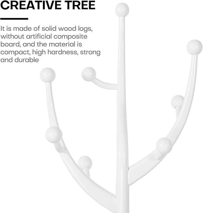 - 【Tree-like Design-Unique Appearance 】: Creative-chic tree branch coat rack with 8 hooks. Stable four-leg thickened bases structure + thickened main rods, the coat tree stand is not only practical to hang clothes, bags, overcoats, but also a delicate decoration for rooms and offices.