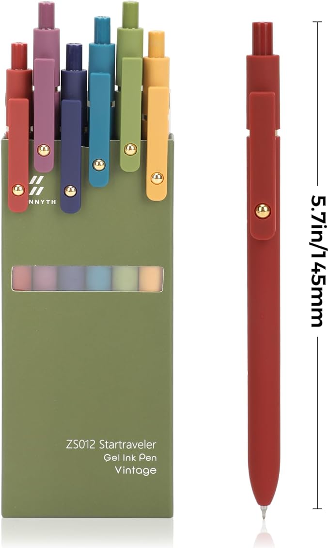 Ddaowanx Gel Pens, 6 Pcs 0.5mm Quick Dry Black Ink Pens Fine Point Smooth Writing Pens, Office Desk Accessories for Women(6 Pcs Vintage-Black Ink)