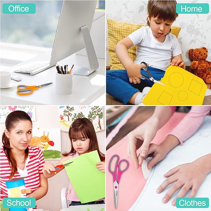 - Multipurpose/ Vibrant 6 Pack Scissors: Classic Colors: Black. Different Colored Scissors, Can Be Used In Different Places. Ease to holding, work perfectly for their crafting for many different tasks. Comfortable to use in: Office, School, House Household, High/Middle School Students Teacher, Sewing Fabric Art Craft DIY, laundry room, bathroom, garage, kitchen or other occasions supplies.