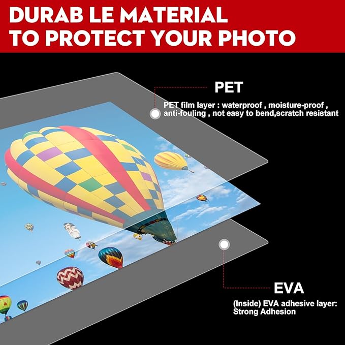 - Premium Material: Crystal clear, glossy sheen, sturdy and Premium material. Laceration resistant, double coating, anti-stain, sturdy and waterproof, protect your document from scratching