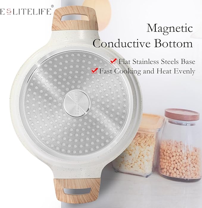 - Non-Toxic Ceramic Coating - ESLITE LIFE ceramic stock pot free of PTFE & PFOA, lead, cadmium and other toxic materials that can leach into your food, making them safe for you, your family and the environment.