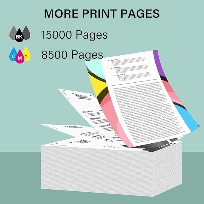 - 【Extra-large capacity】Longer replacement interval: 2 bottles of 145ml black ink can print up to 15000 pages, each color bottle can print up to 8500 pages in 100ml (5% coverage).