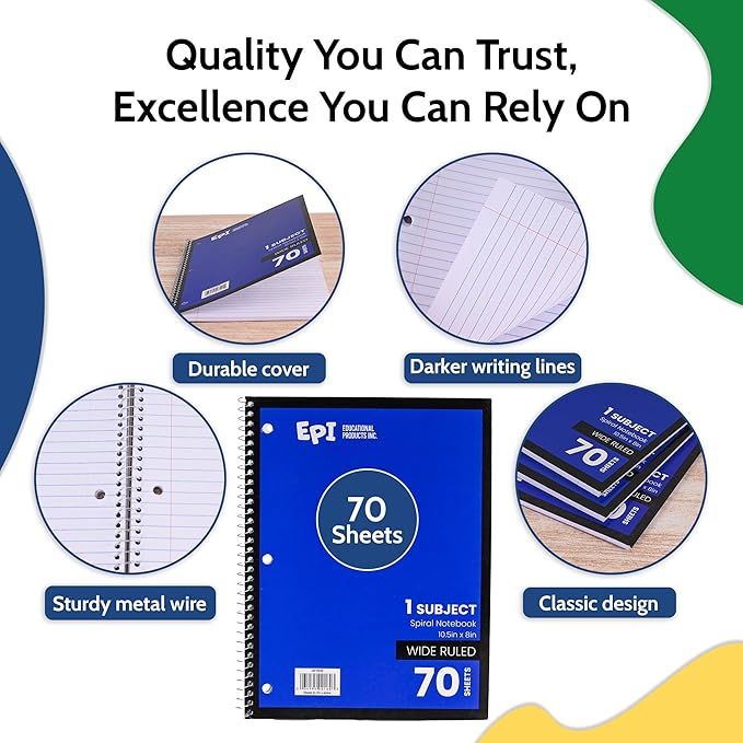 - Versatile & Convenient: EPI Spiral Notebooks are perfect for students, teachers, and professionals. Ideal for note-taking, journaling, and everyday writing tasks at school, office, or home.