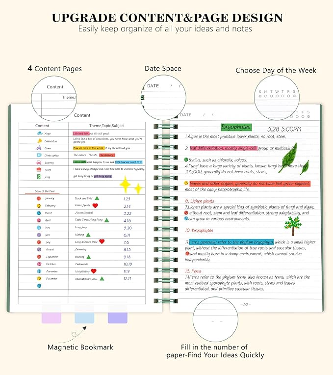 - 【360 Pages Thick Notebook Journal】Each lined journal 360 pages, offering enough space to write in.The new page design allows you to fill in the page numbers yourself. By using a notebook with page numbers and a 4-page blank table of contents, you can jot down important notes from various pages and note them in the front of the journal for easy and fast reference. Each page has a day and day of the week selection to help you keep track of the date.