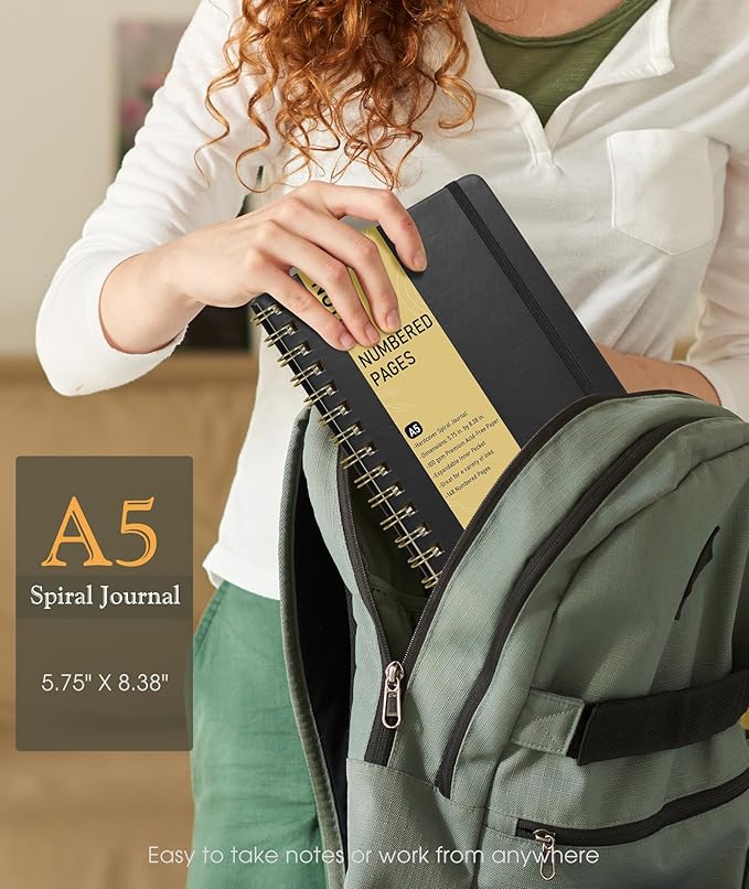 - 【Journal Notebook with 150 Numbered Pages】 The lined spiral journal notebook features water-resistant vegan leather cover touched comfortably, which will help to protect the pages inside and provide a comfortable writing surface. With 150 numbered pages and a 2-page content pages for keeping track of anniversaries, special events, important details, making it easier to review your notes later. Inspirational quotes on the info page to motivate moving forward.