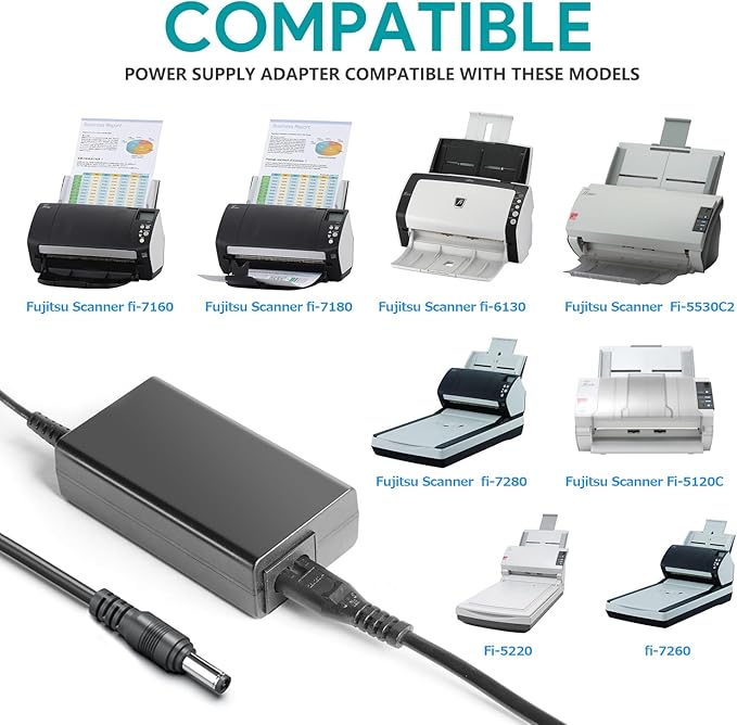- 【Compatibility】Compatible with FUJITSU Image Scanner FI-Series fi-5120C / fi-5220C / fi-5530C / fi-5530C2 / fi-6110 / fi-6130 / fi-6140 / fi-6230 / fi-6240 / fi-6130Z / fi-6230Z / fi-6140Z / fi-6240Z / fi-7160 / fi-7180 / fi-7260 / fi-7280 / Fujitsu ScanSnap S1500 S1500M Scanner Power Supply Cord.