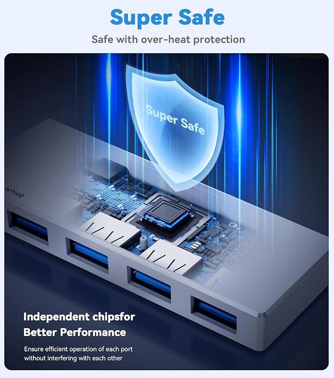 - High-Speed Data Hub: The 4-port USB distributor utilizes high-efficiency USB 3.0 to provide stable data transfers of up to 5Gbps (USB 3.0) and supports transfer speeds of 480Mbps (USB 2.0) and 12Mbps (USB 1.1).***This device is only used for data transmission and cannot be used to charge the device***