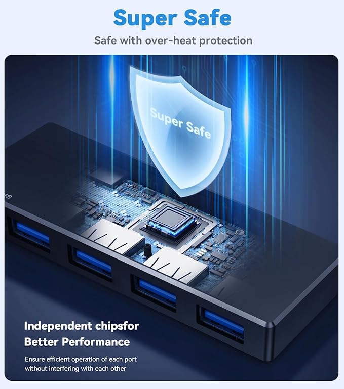 - High-Speed Data Hub: The 4-port USB distributor utilizes high-efficiency USB 3.0 to provide stable data transfers of up to 5Gbps (USB 3.0) and supports transfer speeds of 480Mbps (USB 2.0) and 12Mbps (USB 1.1).***This device is only used for data transmission and cannot be used to charge the device***