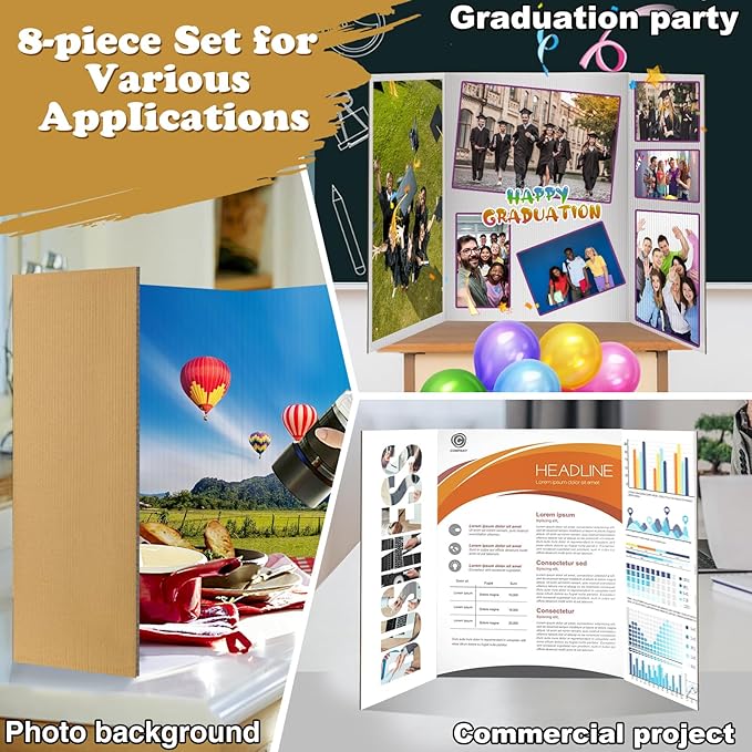 - Package Includes: You will receive 8 pieces of science project board trifold, a large enough number to meet the needs of different DIY use on a daily basis, such as school projects, business presentations, photo backdrops, etc.