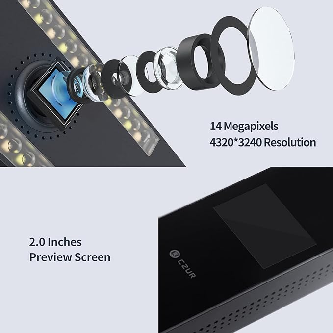 CZUR Aura Pro Portable Book Scanner, A3 Document Scanner, Auto-Flatten, 180+ Language OCR, 90° Foldable, Fast Scan, for Mac & Windows