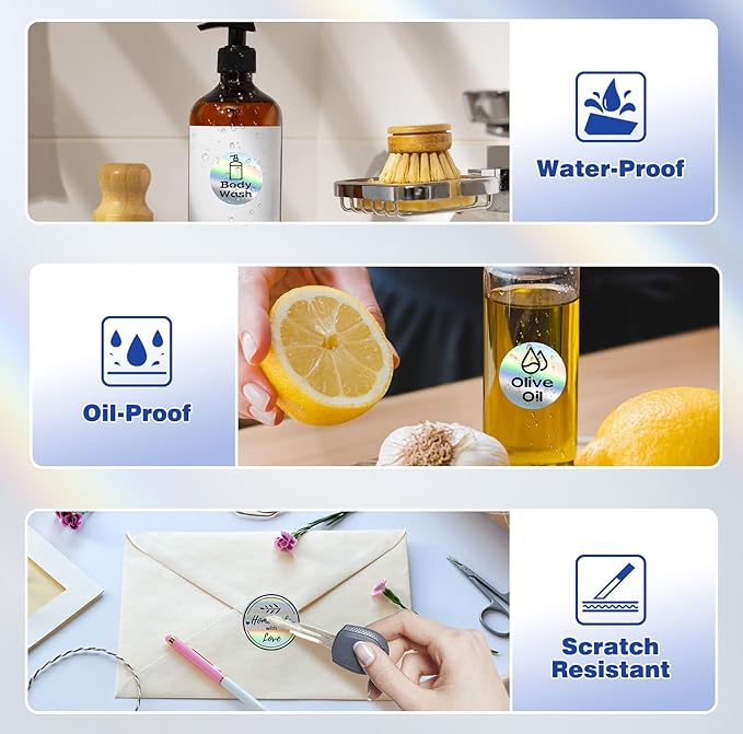 - 【Splendid Visual Effects】 Transform your product packaging with our dazzling Holographic Silver Thermal Stickers Labels. These thermal labels unveil a stunning rainbow surface that shifts and shimmers with every light play, delivering a truly mesmerizing and one-of-a-kind visual spectacle. Make your mark with an unforgettable impression that leaps off the shelf and captures the eye of everyone