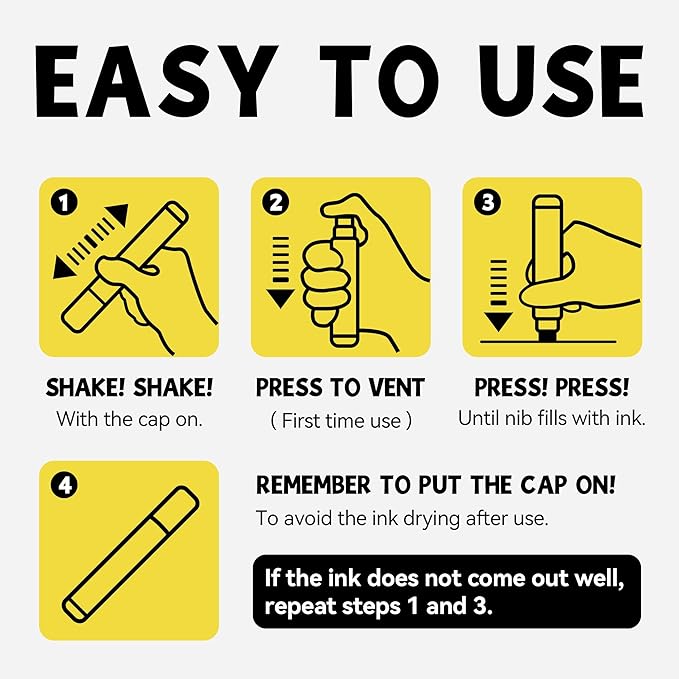 - Safety First – Our acrylic paint markers are non-toxic, Each thick permanent marker meets ASTM d-4236 and EN-71 safety standards, are suitable for artists of all ages, working seamlessly on rock, fabric, glass, wood, plastic, paper, and more