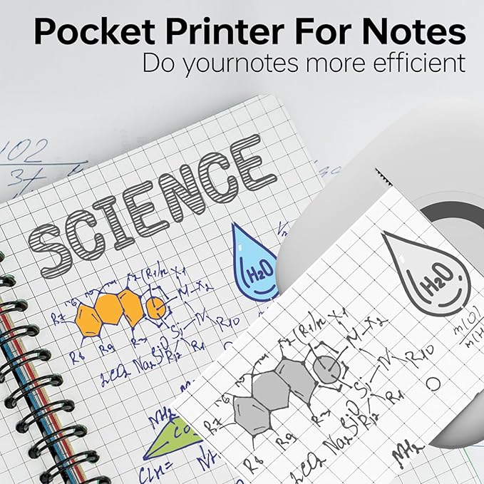 - [Enjoy More Interesting Life] New style inkless pocket printer is used to print pictures/photos,memo,shopping lists,study/meeting notes and etc.Mini sticker printer machine,it's a great helper to decorate your bullet journal more memorable,to make photos more stylish,to organize study notes more efficiently,to keep track of happiness moments at anytime etc.Undoubtedly,it must be a special gift for children,students,teachers and DIY craftsman on Christmas,Children's Day and Thanksgiving day.