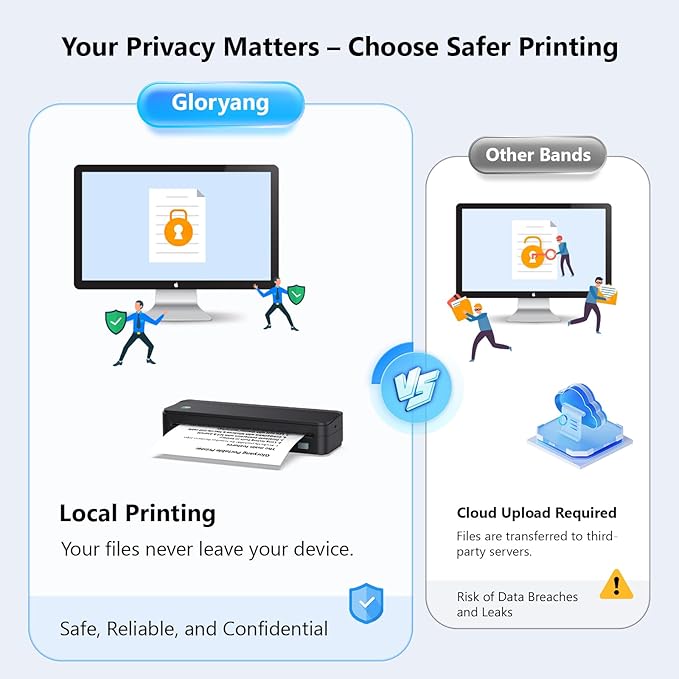 - Space-Saving Design - Say goodbye to clutter with the built-in paper bin of the Gloryang printer. It saves space and keeps your workspace tidy, whether you're on the go or in a car. With two ways to load thermal paper and the ability to print documents ranging from 2 to 8.5 inches, it caters to various printing needs.