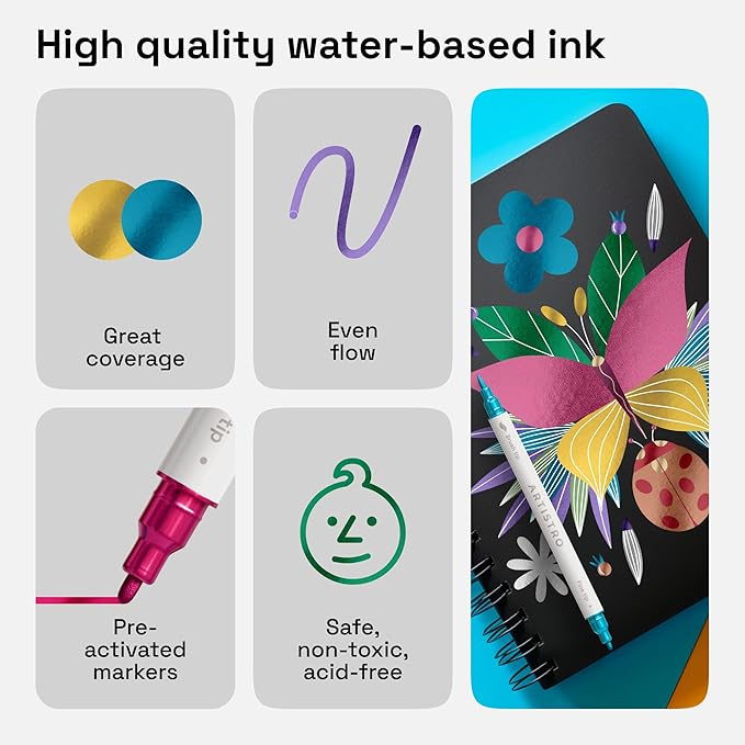 ARTISTRO Dual Tip Acrylic Paint Markers - Easy for All Ages & Levels Acrylic Paint Pens for Fabric, Rocks, Paper, Wood, Canvas, Glass, DIY (Dual Tip Metallic, 24)