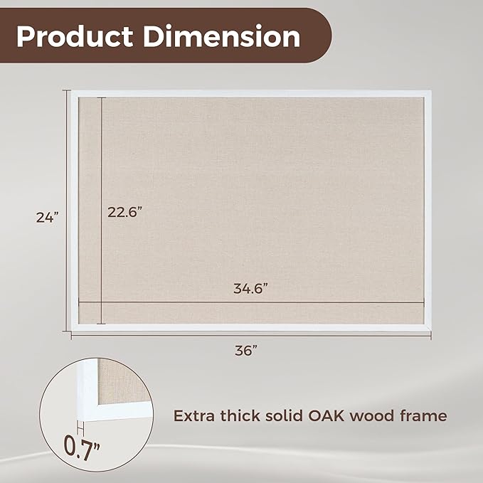 - Size: The 24x36 inch bulletin board offers ample display space, and comes with 10 beautifully crafted wooden push pins for showcasing your favorite items with style.