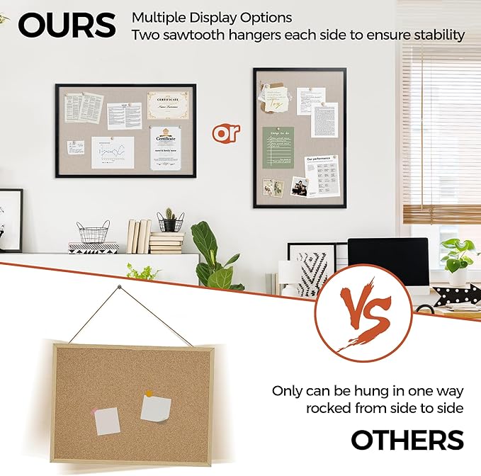 - Unique Design: Easily customize the board orientation to fit your space. Natural cork bulletin board add a classic look to your office or home. Both strong and stylish, it will be a great addition to your space.