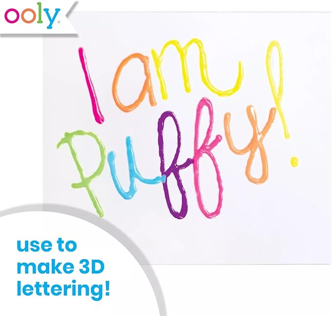 Ooly Puffy Paint Neon Gel Pens Set of 6, 3D Foam Texture Painting Magic Puffy Pen, Creative and Fun Pens for Kids Arts and Crafts Drawing Supplies