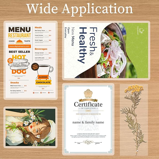 - 😊【Wide Applicability】Compatible with all thermal laminators. Not only for office work, but also for crafting. Very suitable use for documents, certificates, photos, menus, invoices, decorative cards, logos, etc.