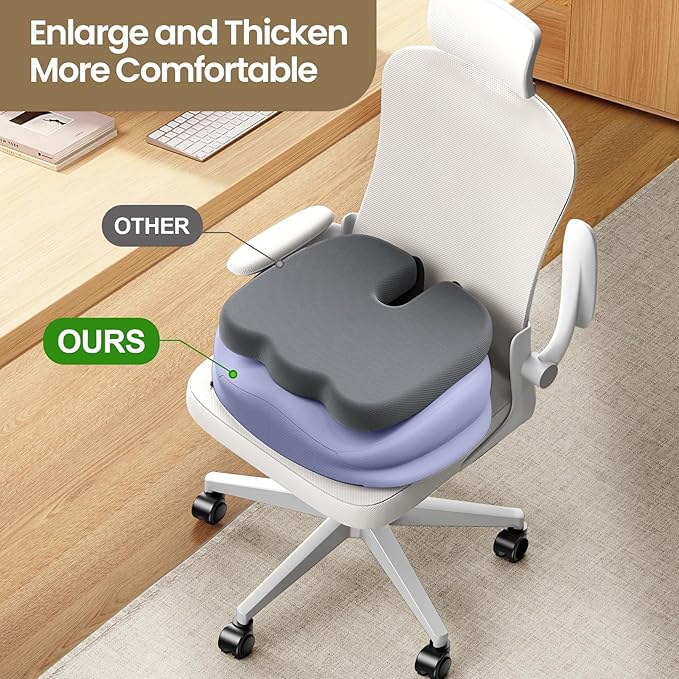 - 🧽【Ergonomic】The Ergonomic Seat Cushion is scientifically contoured to cradle your thighs & hip and help you sit upright up on any chair.