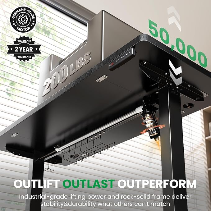 - Reliable&Durable : This electric standing desk lifting power enough to fully loaded office and game equipment up to 200lbs. 50000 times lift tests for years of using.