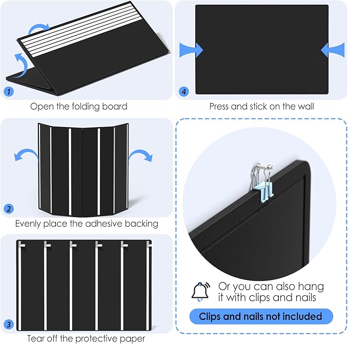 - FOLDING DESIGN: It adopts a 3-fold setting, which is portable and convenient to store without taking up space. The HOOK and LOOP FASTENER BACKING ADHESIVE adhesive design can be removed and displayed on the wall when needed. You can rest assured that the high-density board will not break after multiple tearing tests and no creases after unfolding.