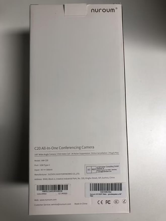 - All-in-one Video Conference System: The NUROUM C20 is a sleek and compact all-in-one video conferencing solution featuring a 2MP CMOS sensor for full HD 1080p video calls, with an ultra-wide 100° field of view (FOV), a 4 MEMS microphone array, and an enhanced loudspeaker. The 100° FOV ensures everyone in the conference room is visible without the need to lean forward, allowing for comfortable seating during meetings. Perfect for small to medium teams engaged in online or hybrid collaboration.