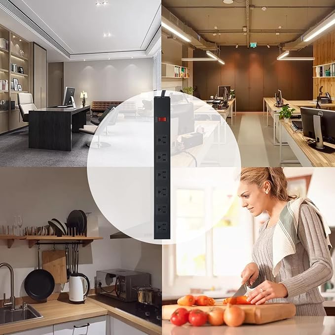 - Wide Spaced Power Strip: 6 wide spaced outlets, the center-to-center distance between AC outlets is about 1.57inch(4cm), which is very suitable for large plugs. Connect with 6 ft 14AWG power cord. With 1200 Joules surge protection, the power outlet withstands spikes and fluctuations, protecting your electronics and home power from lightning and power surges.