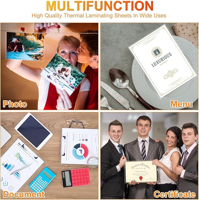 - Application:Perfect for protecting certificates,signs,photos,awards,calendars,kids artworks. It can seal and protect your documents it can be used in classroom, home and office. Compatible with all thermal laminator machine brands