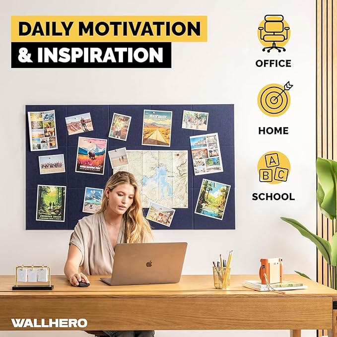 - 💡 𝐈𝐍𝐒𝐏𝐈𝐑𝐀𝐓𝐈𝐎𝐍 𝐀𝐓 𝐀 𝐆𝐋𝐀𝐍𝐂𝐄: Use these felt tiles as your personal vision board to keep your goals in sight. Whether for career, health, photos, or personal projects, WallHero empowers you to plan, execute, and achieve.