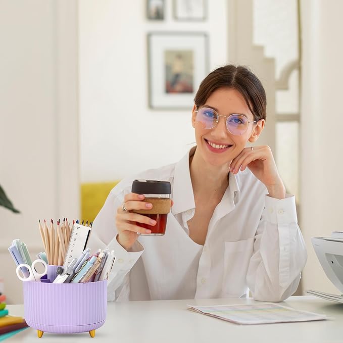 - What You Get: This set includes 2 purple rotating pen holders and 2 non-slip mats. Made from high-quality, sturdy materials, these pencil organizers are built to last, ensuring they will be a reliable addition to your desk for years to come