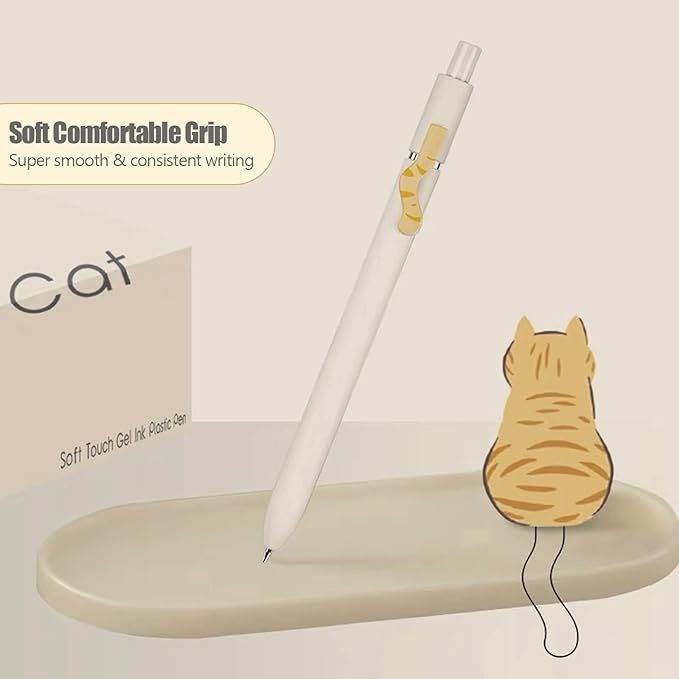 8Pcs Gel Pens, 0.5mm Black Ink Pen Retractable Fine Point Smooth Writing Pens, Aesthetic Office School Supplies, Desk Accessories Nursing Pen for Journaling Note Taking, Small Gifts for Women Men(Cat)