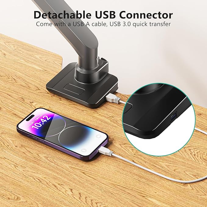 - Double Benefits: Single monitor stand come with 2 easily accessible USB type-C port and USB Type-A 3.0 port. Open up available desk space can help to provide a new range of adaptable positions for your displays